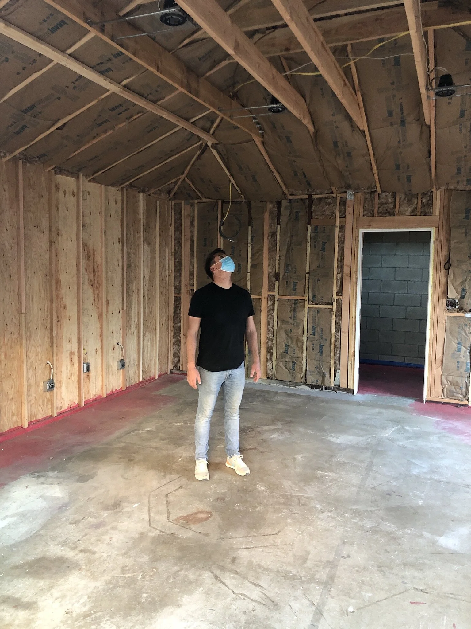 The client wanted to turn the garage into a living room/ADU. In order to pass code, we had to trench all the way back to the main line. We essentially rebuild the entire structure from the group up.